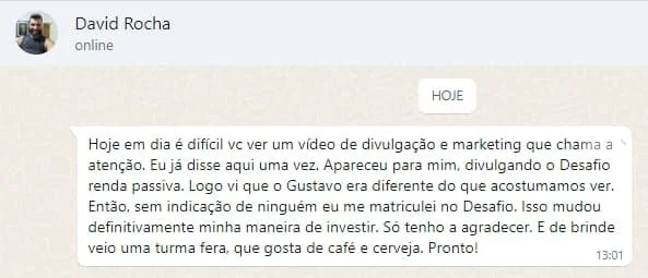 “Quando o Gustavo abriu vagas para seu curso eu paguei pra ver… não me arrependo”. Rodrigo